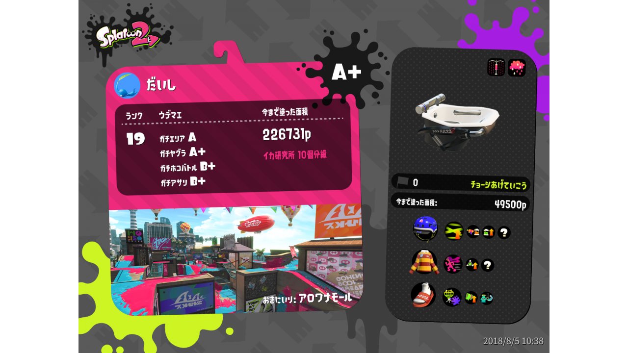 | Name | Weapon | Level | Rank | Inked | k+a/sp | k/d |
