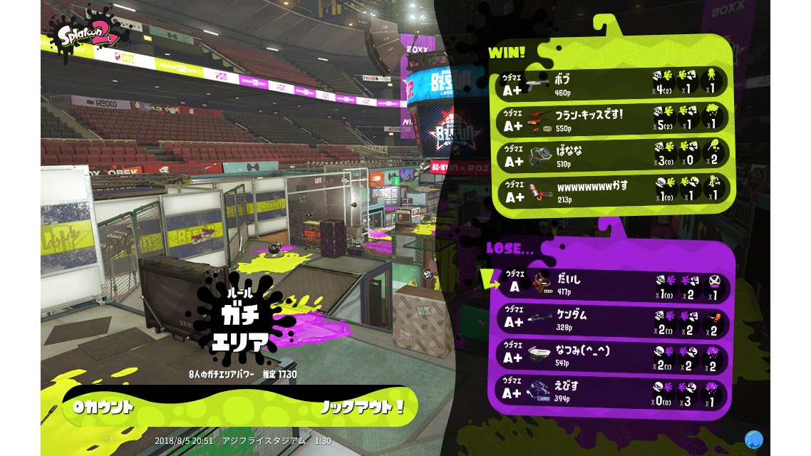 | Mode | Splat Zones - Ranked Battle | |||||||||||||||||||||||||||||||