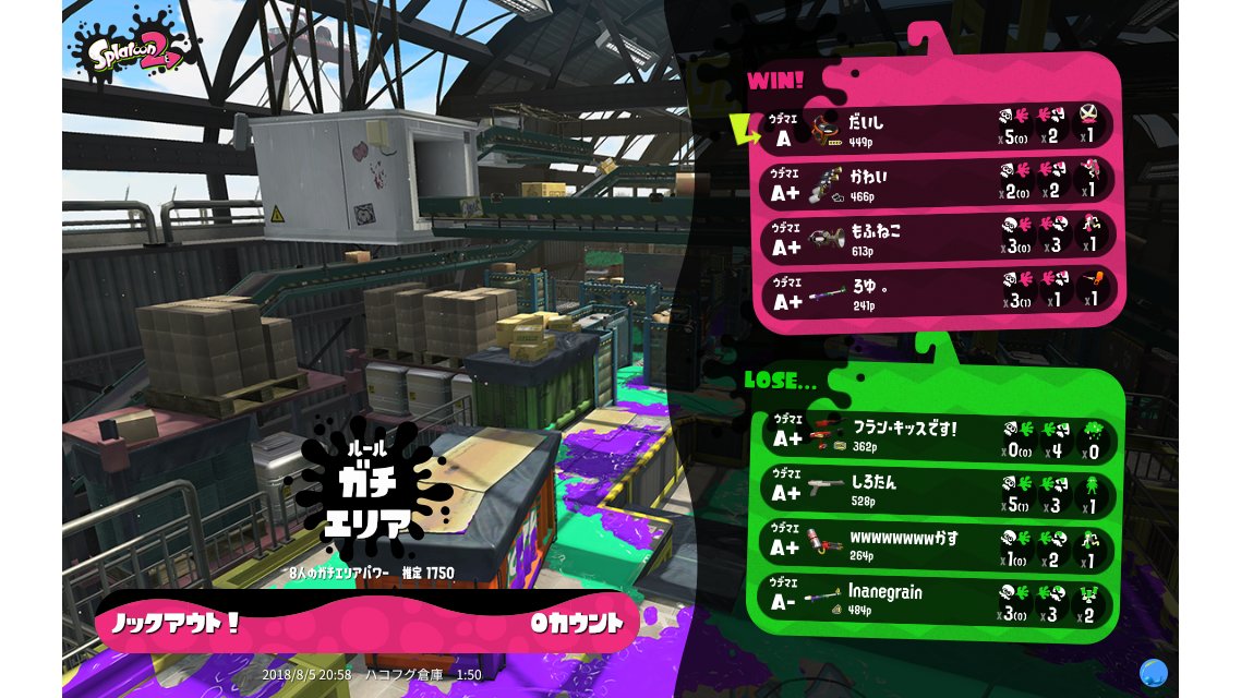 | Name | Weapon | Level | Rank | Inked | k+a/sp | k/d |