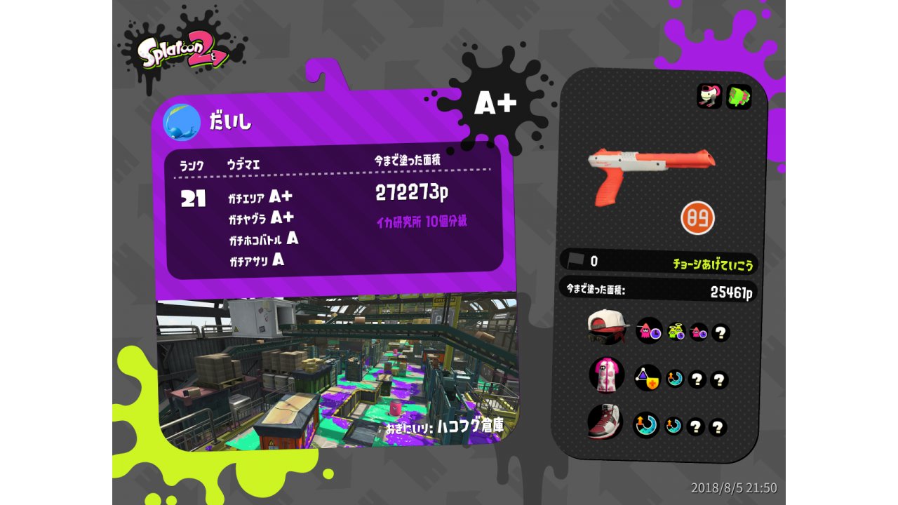 | Name | Weapon | Level | Rank | Inked | k+a/sp | k/d |