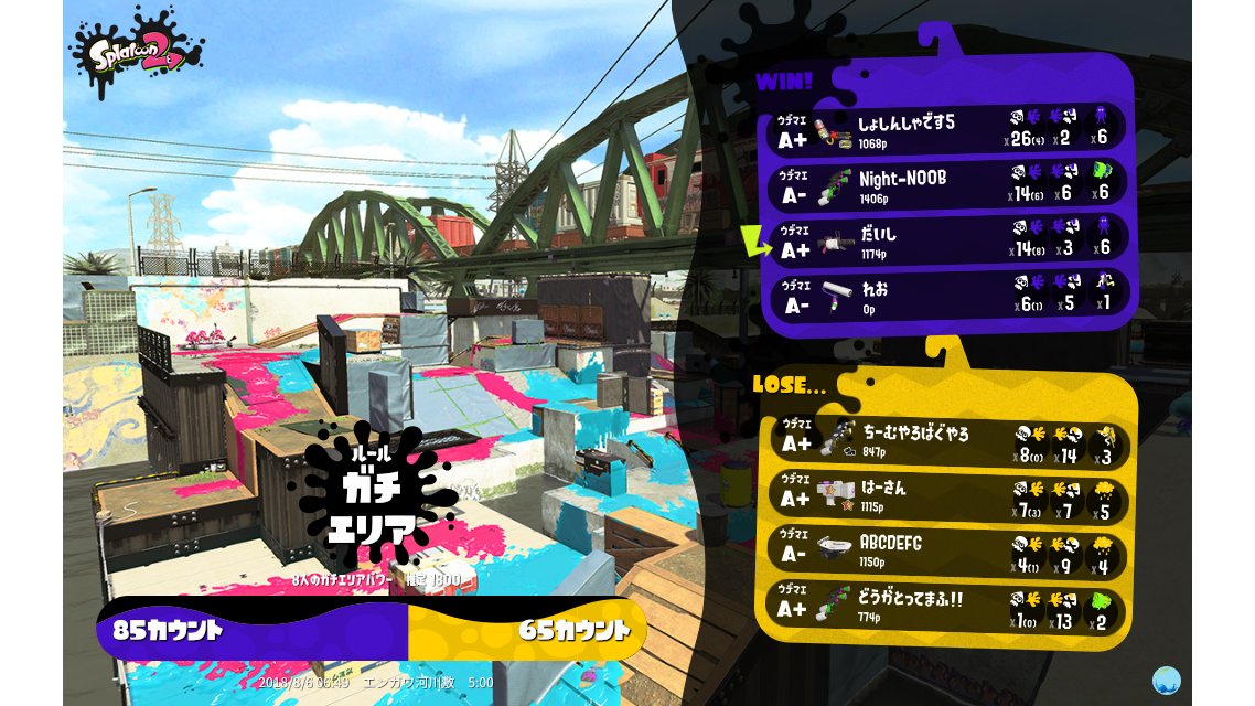 | Mode | Splat Zones - Ranked Battle | ||||||||||||||||||||||||||||||||||