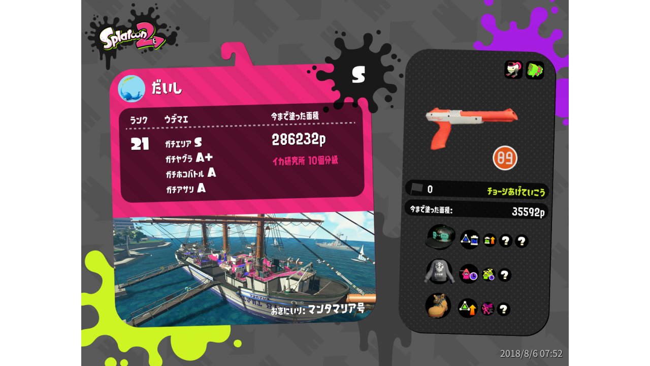 | Name | Weapon | Level | Rank | Inked | k+a/sp | k/d |