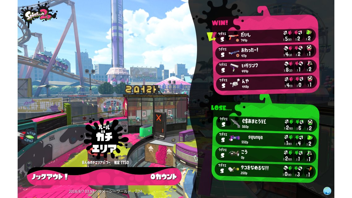 | Mode | Splat Zones - Ranked Battle | |||||||||||||||||||||||||||||||