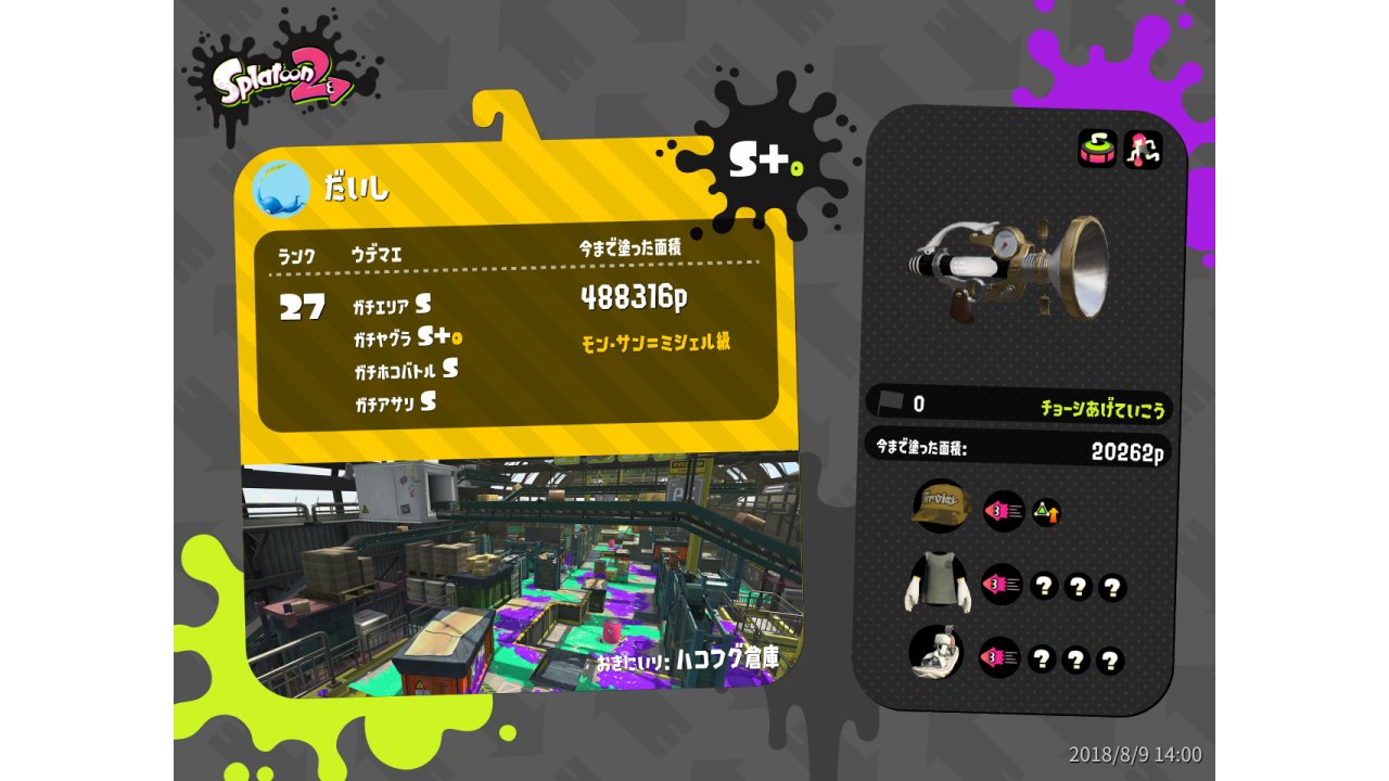 | Name | Weapon | Level | Rank | Inked | k+a/sp | k/d |