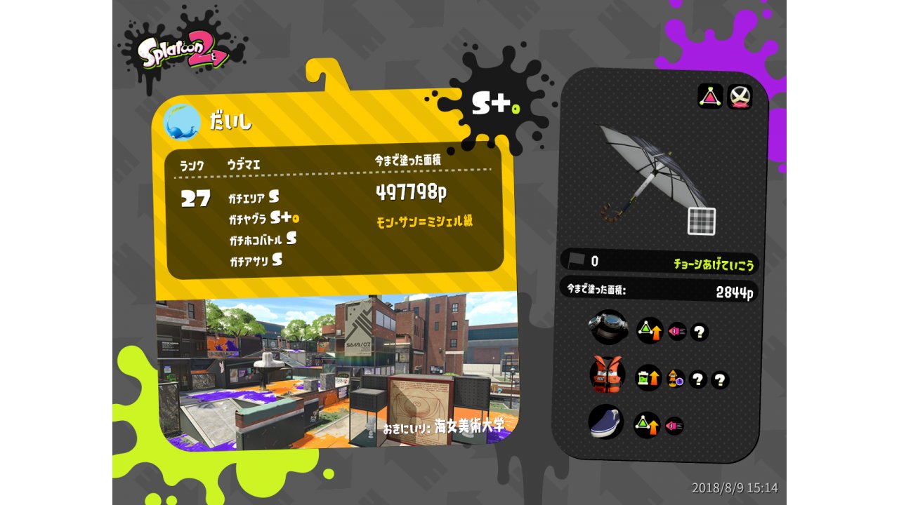 | Weapon | Undercover Sorella Brella ( Splat Bomb, Baller) | |||||||||||||||||||||||||||||||