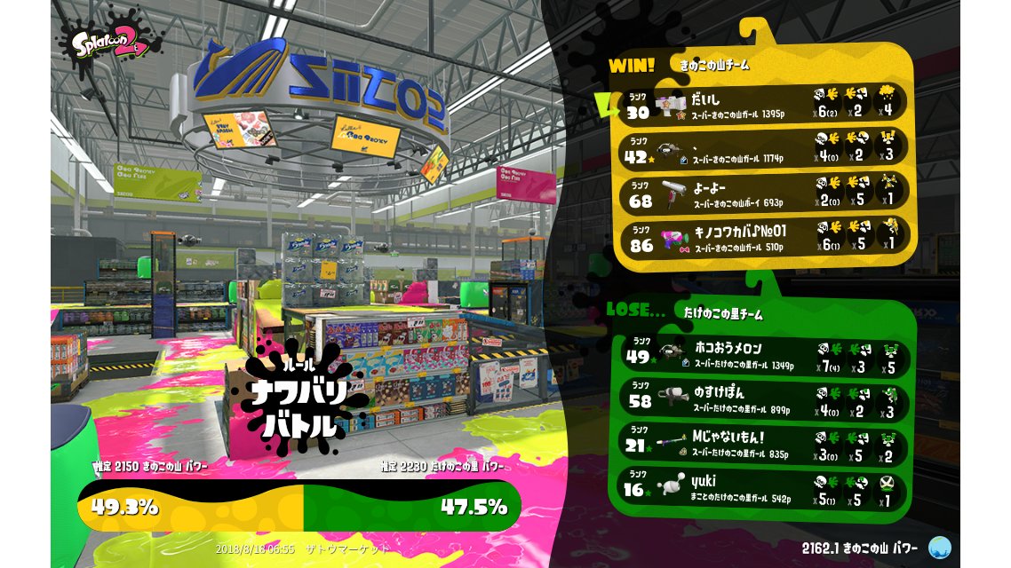 | Splatfest Title | きのこの山 Defender 16 → きのこの山 Defender 25 | |||||||||||||||||||||||||||||||