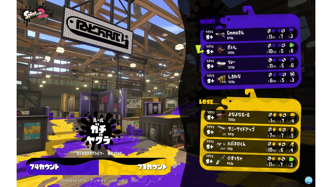 | Name | Weapon | Level | Rank | Inked | k+a/sp | k/d |