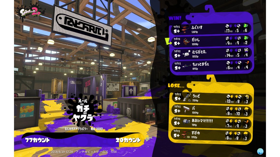 | Name | Weapon | Level | Rank | Inked | k+a/sp | k/d |