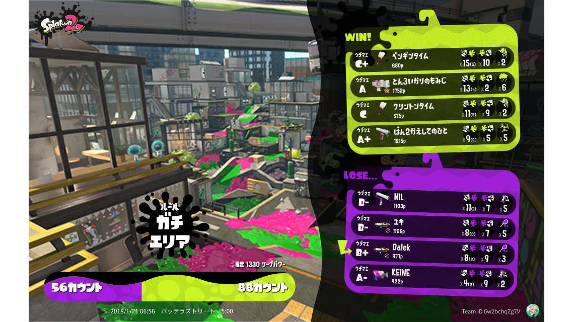 | Mode | Splat Zones - League Battle (Twin) |