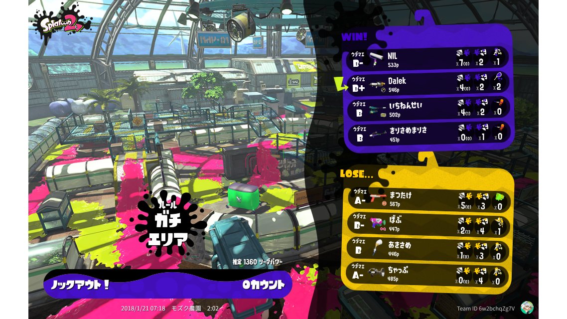 | Mode | Splat Zones - League Battle (Twin) |