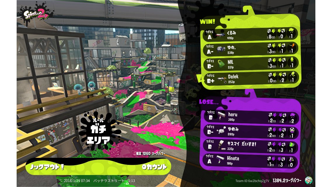 | Name | Weapon | Level | Rank | Inked | k+a/sp | k/d |
