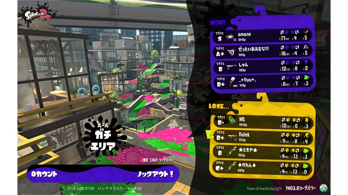 | Name | Weapon | Level | Rank | Inked | k+a/sp | k/d |
