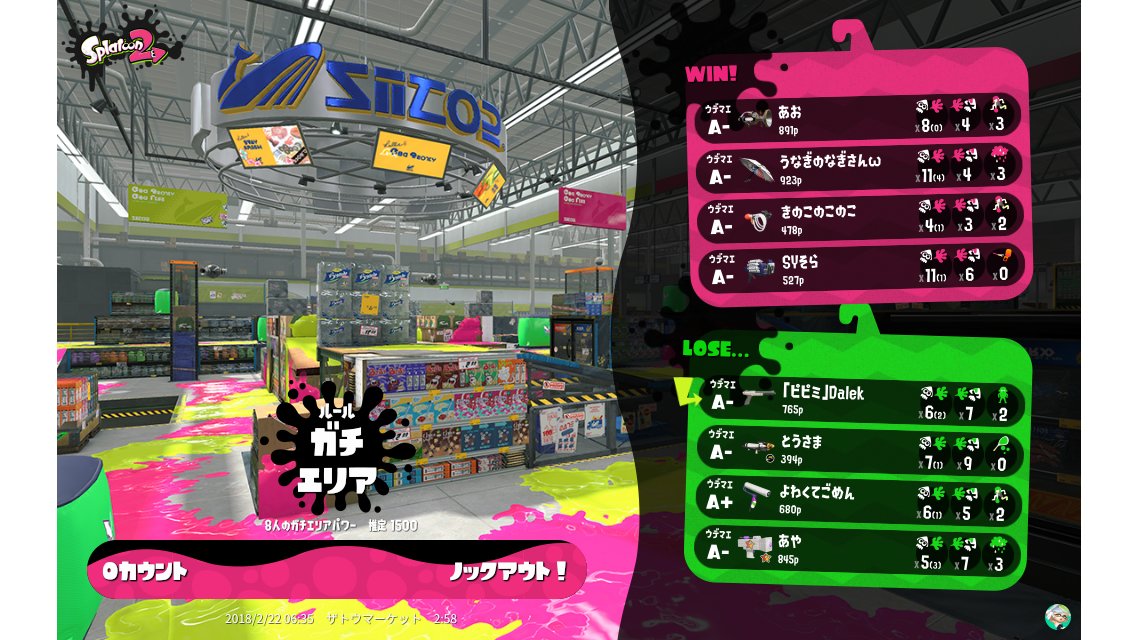 | Name | Weapon | Level | Rank | Inked | k+a/sp | k/d |