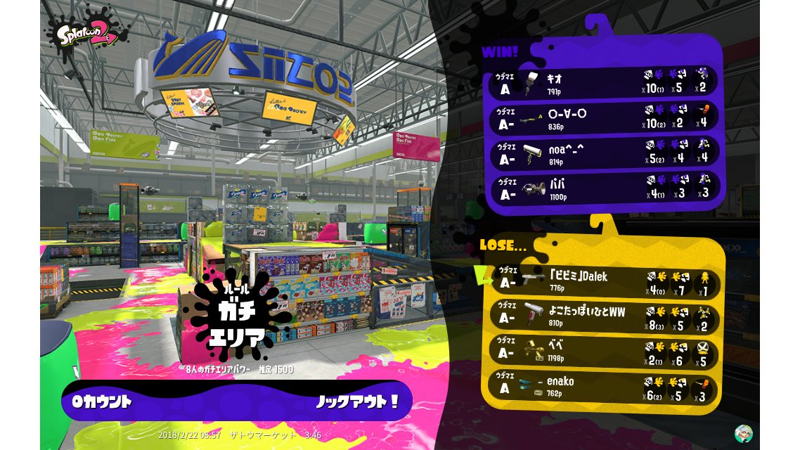 | Name | Weapon | Level | Rank | Inked | k+a/sp | k/d |