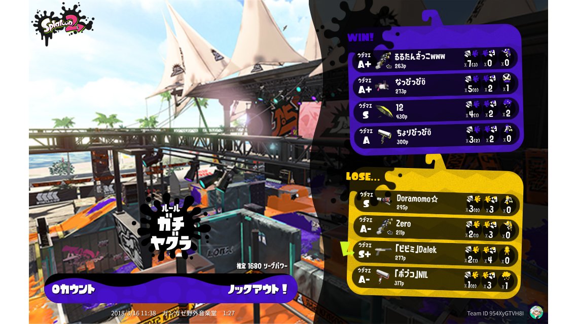 | Name | Weapon | Level | Rank | Inked | k+a/sp | k/d |