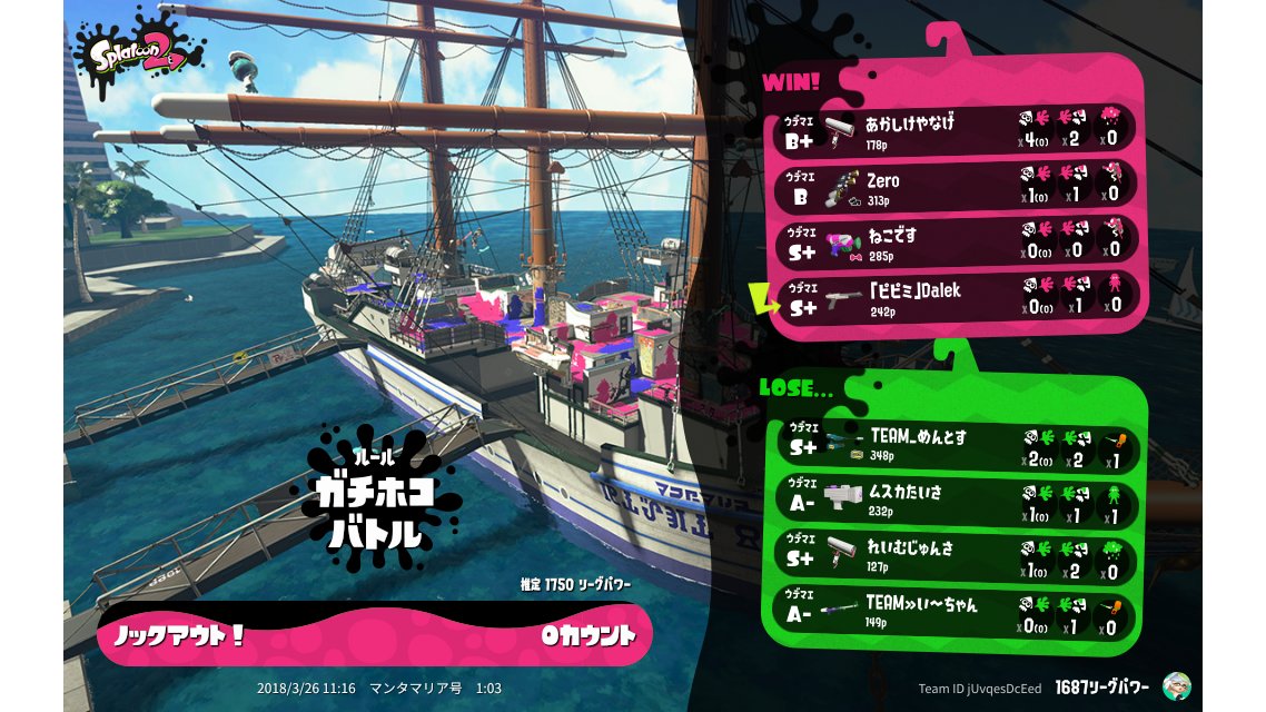 | Name | Weapon | Level | Rank | Inked | k+a/sp | k/d |