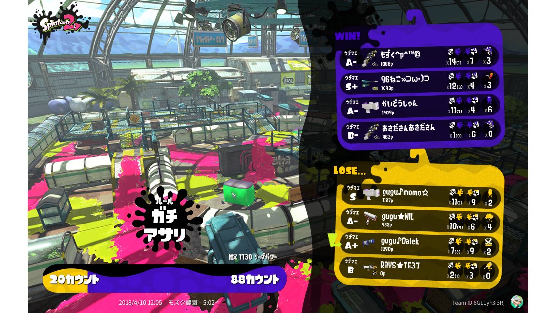| Name | Weapon | Level | Rank | Inked | k+a/sp | k/d |