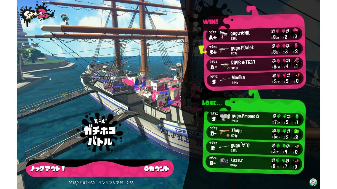 | Name | Weapon | Level | Rank | Inked | k+a/sp | k/d |