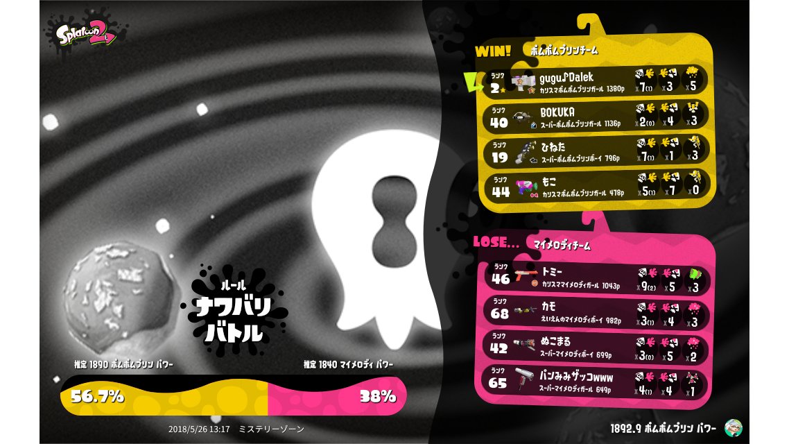 | Splatfest Power | 1,892.9 | ||||||||||||||||||||||||||||||||||