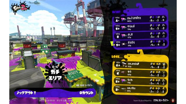 | Name | Weapon | Level | Rank | Inked | k+a/sp | k/d |