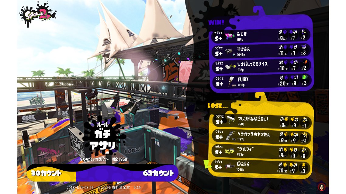 | Name | Weapon | Level | Rank | Inked | k+a/sp | k/d |