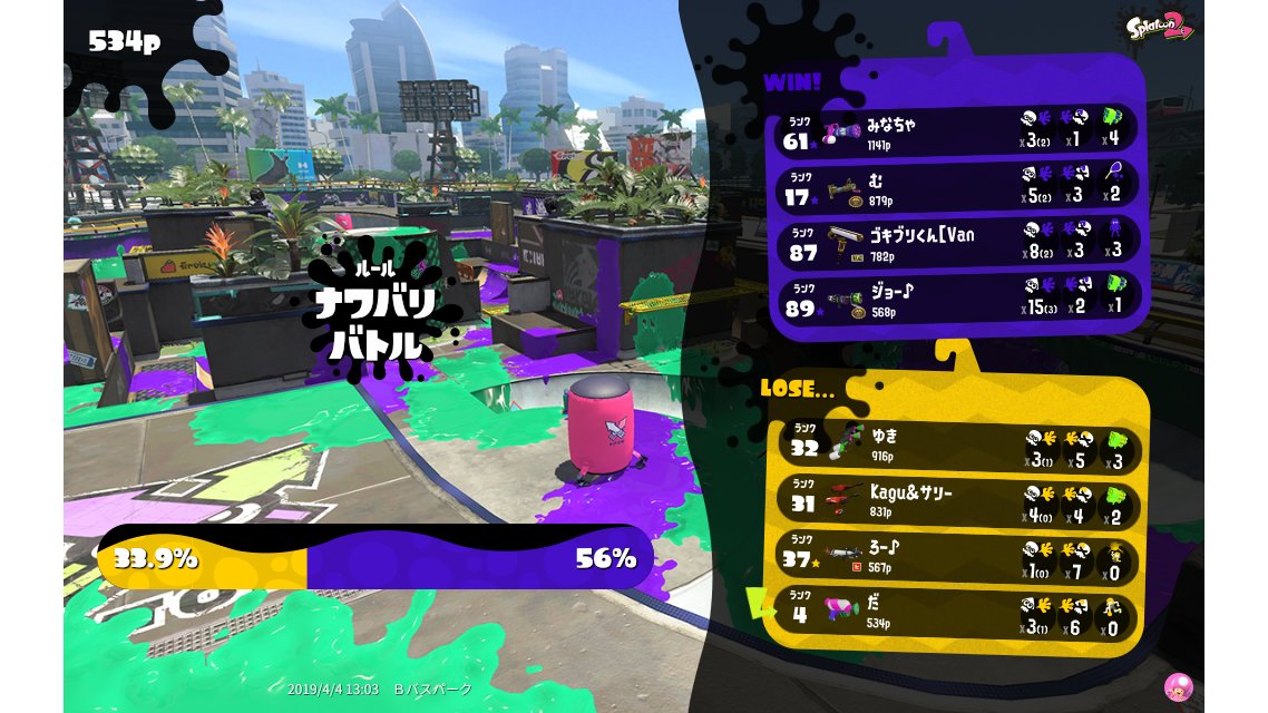 | Mode | Turf War - Regular Battle | ||||||||||||||||