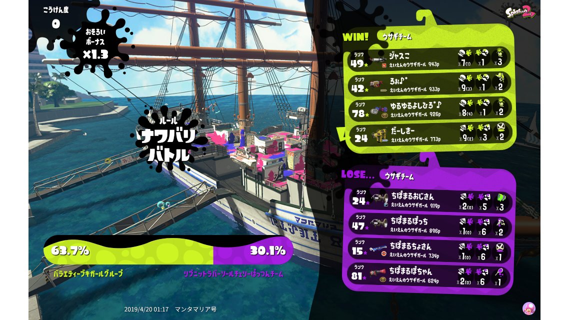 | Splatfest Title | ウサギ Queen → ウサギ Queen | ||||||||||||||||||||||||||||