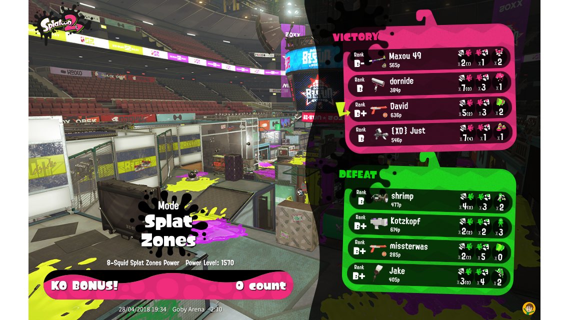 | Mode | Splat Zones - Ranked Battle | ||||||||||||||||||||||||||||||||||