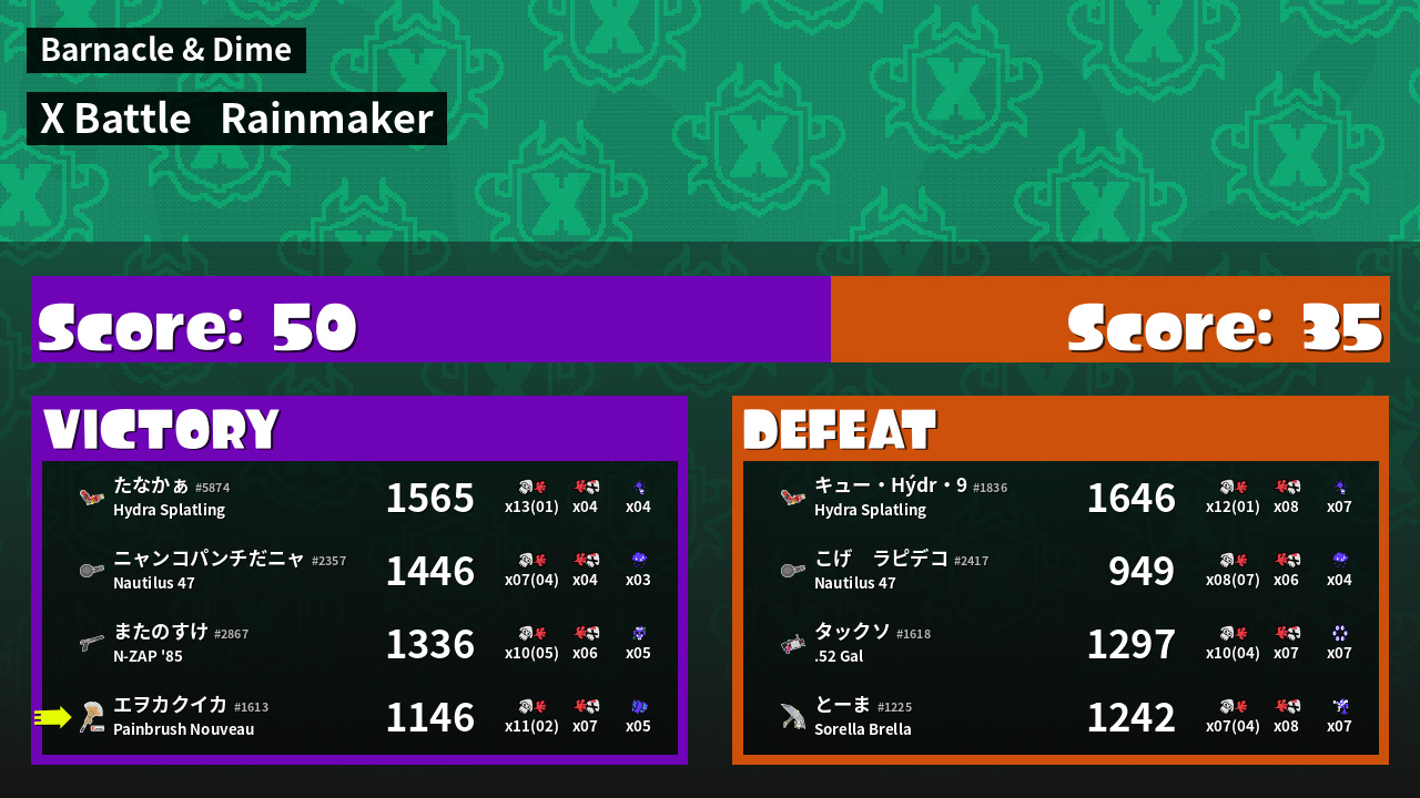 | Medals | #1 Rainmaker Stopper First Splat! #1 Tenta Missiles User | ||