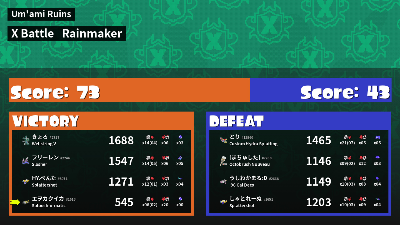 | Mode | Rainmaker - X Battle | ||