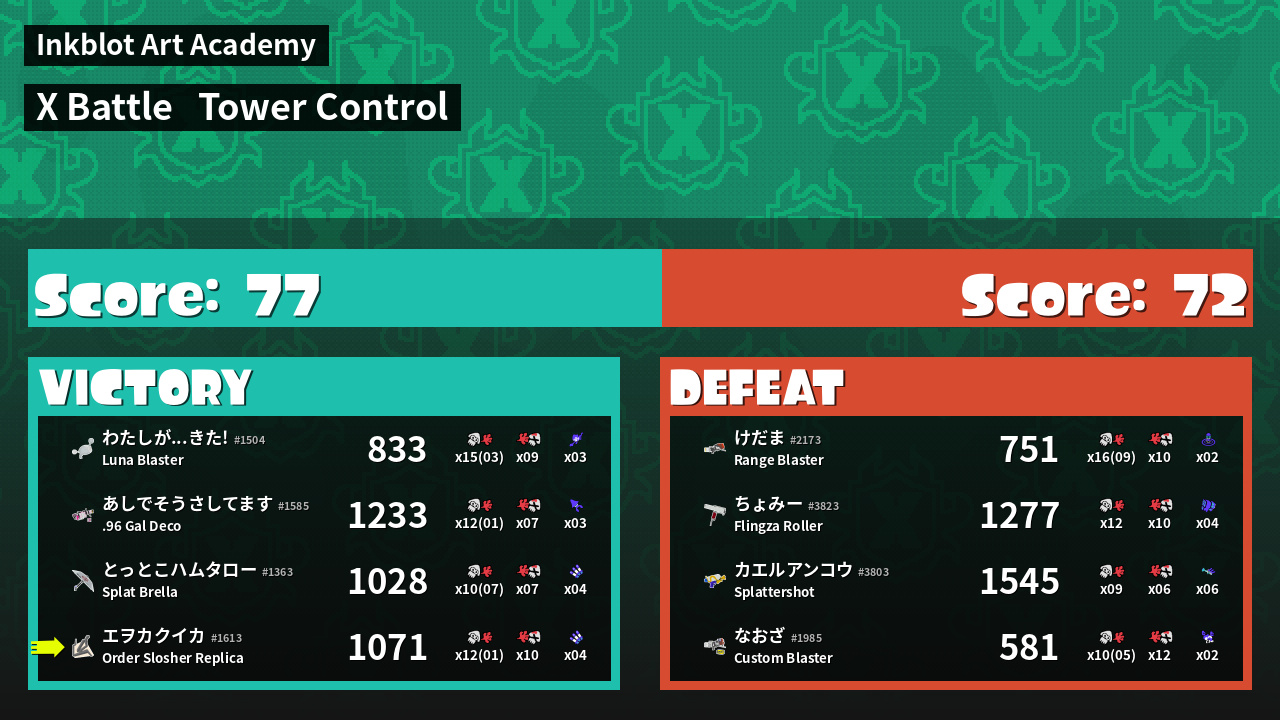 | Mode | Tower Control - X Battle | ||