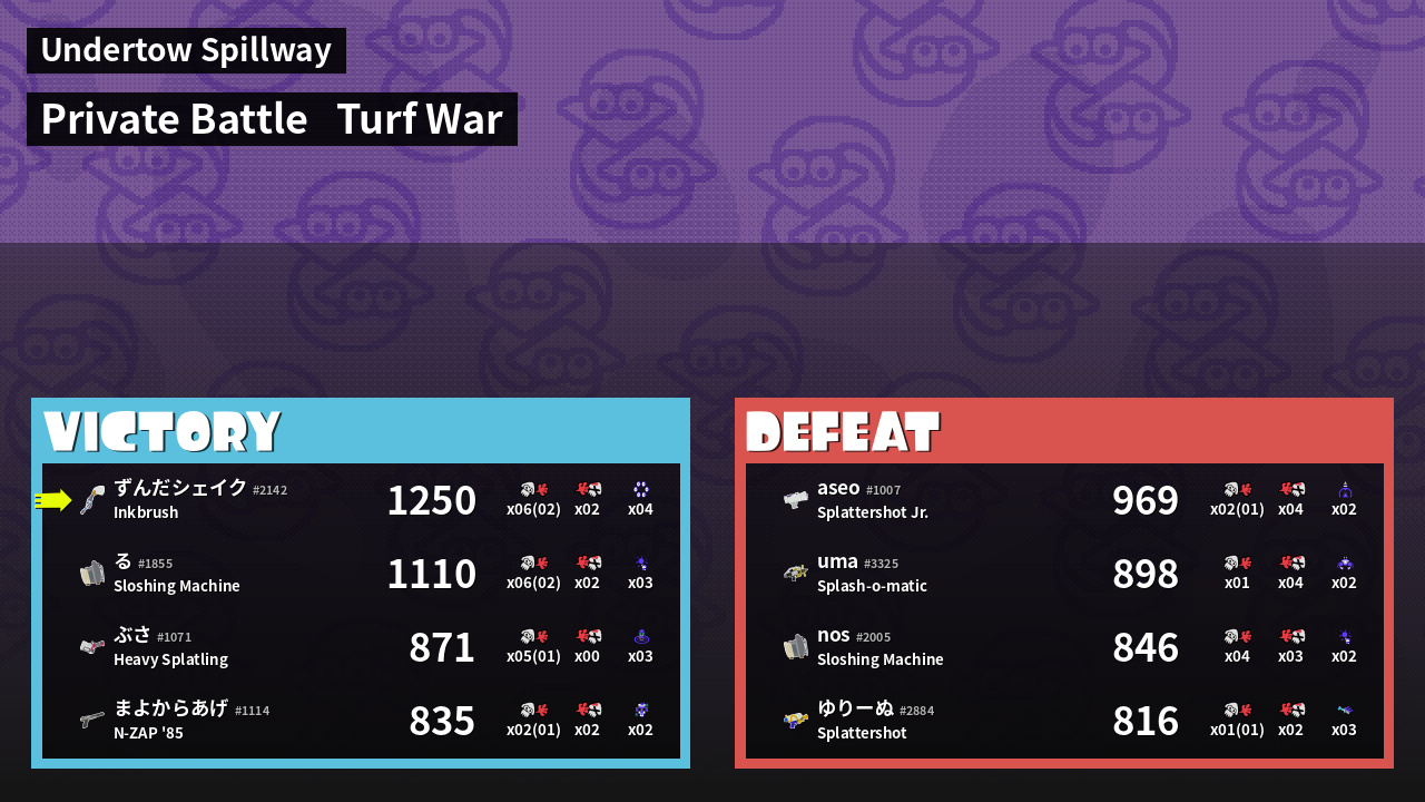 | Mode | Turf War - Private Battle | ||