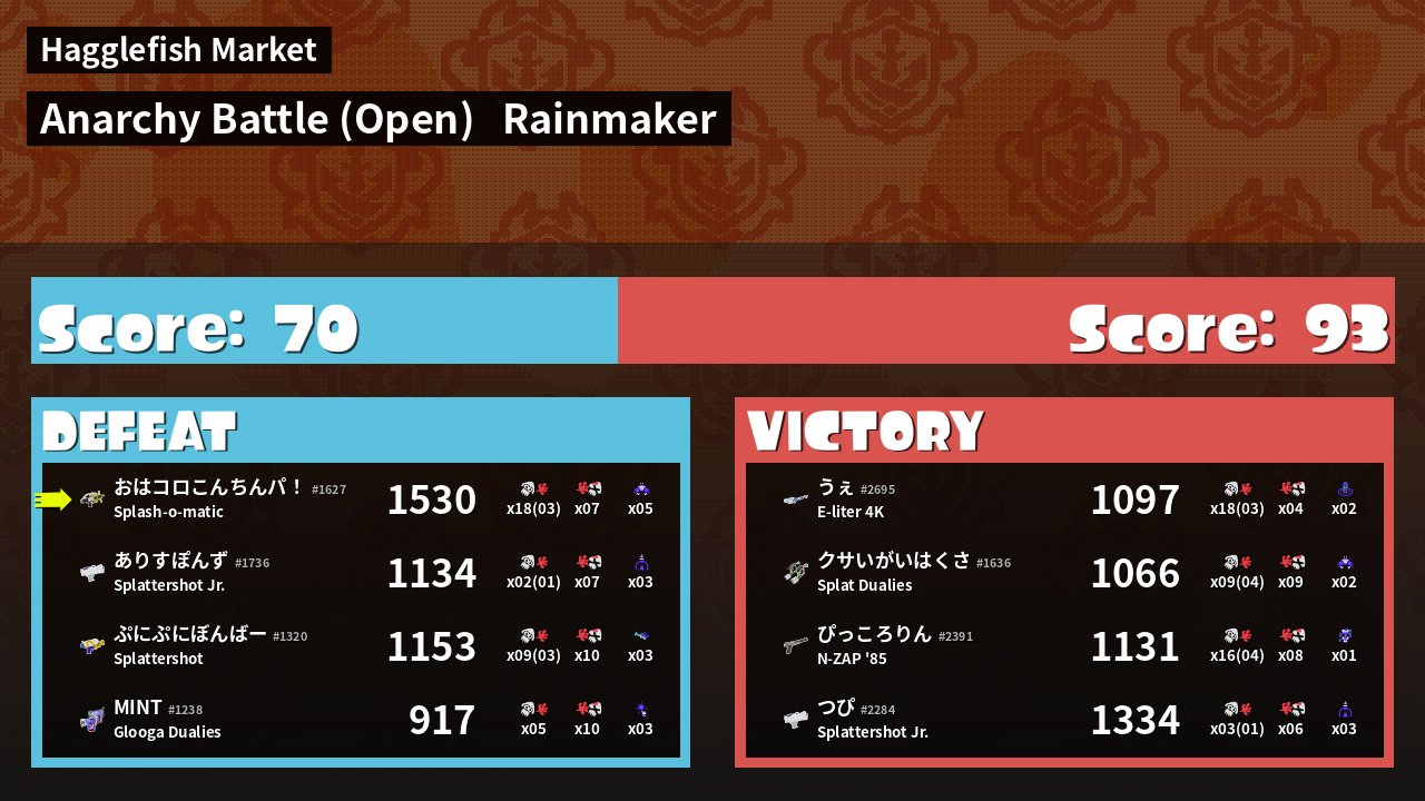 | Mode | Rainmaker - Anarchy Battle (Open) | ||