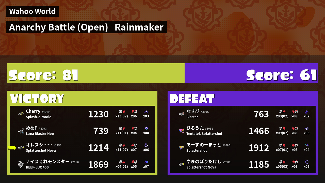 | Mode | Rainmaker - Anarchy Battle (Open) | ||