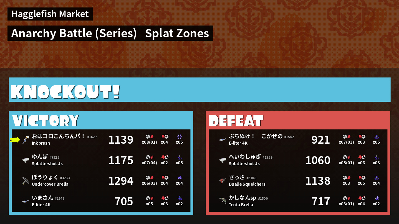 | Medals | #1 Overall Splatter #1 Splat Zone Guard #1 Enemy Splatter | ||