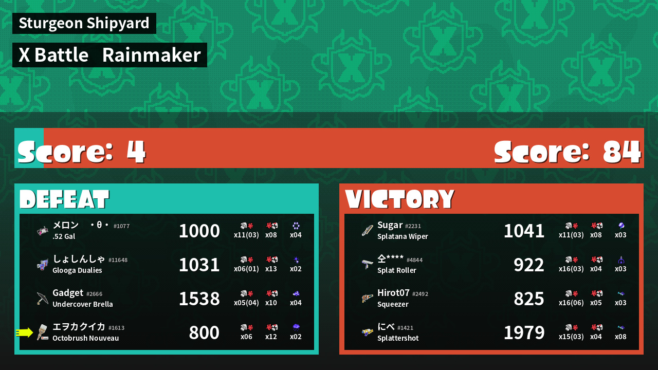 | Medals | #2 Overall Splatter #2 Enemy Splatter | ||