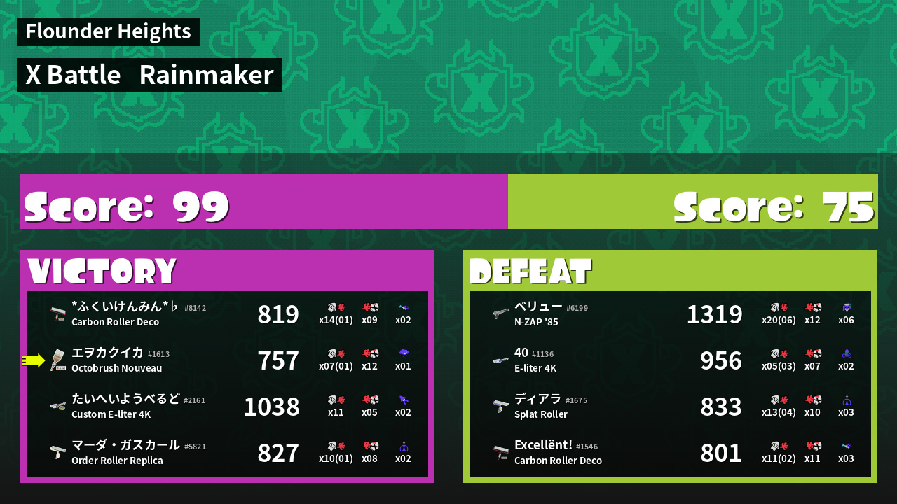 | Mode | Rainmaker - X Battle | ||