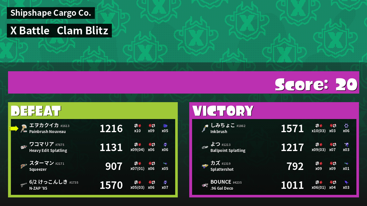 | Medals | #1 Overall Splatter #1 Enemy Splatter First Splat! | ||