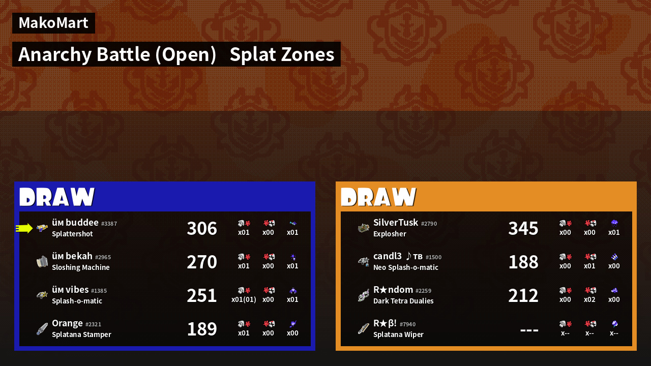 | Mode | Splat Zones - Anarchy Battle (Open) | ||