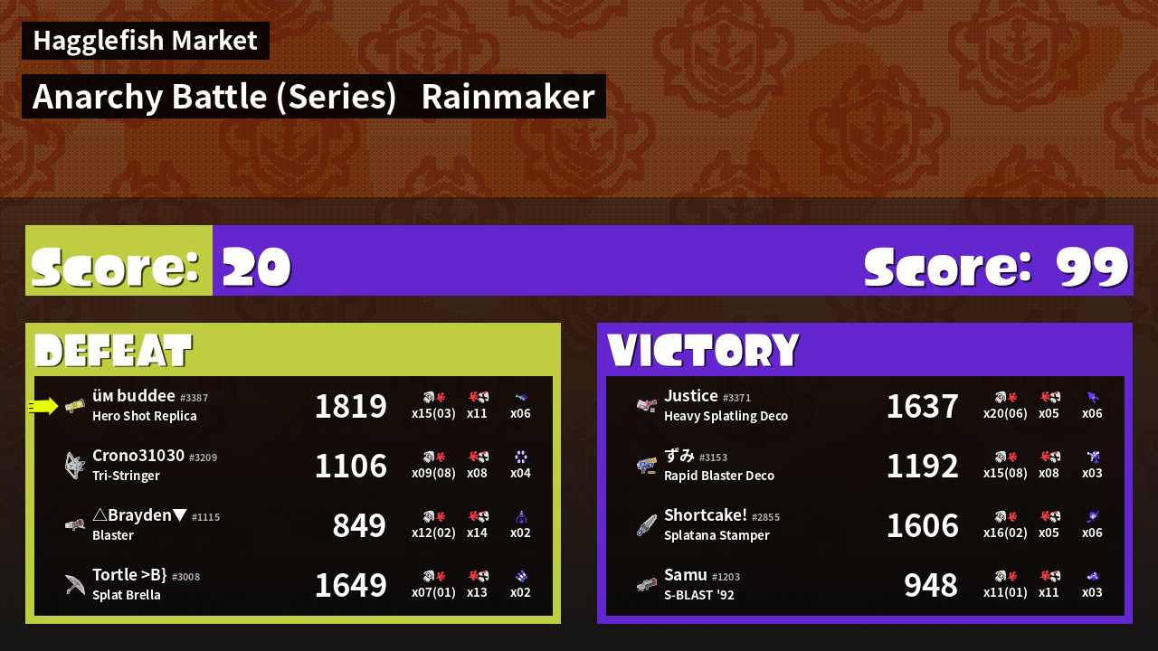 | Medals | #1 Overall Splatter #1 Turf Inker #1 Popular Target | ||