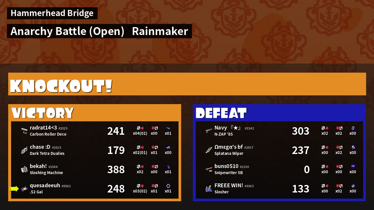 | Mode | Rainmaker - Anarchy Battle (Open) | ||