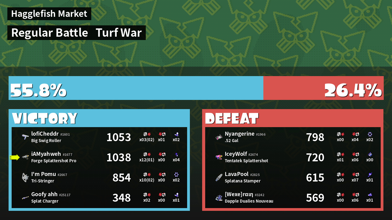 | Medals | #1 Overall Splatter #1 Enemy-Base Inker #1 Enemy Splatter | ||
