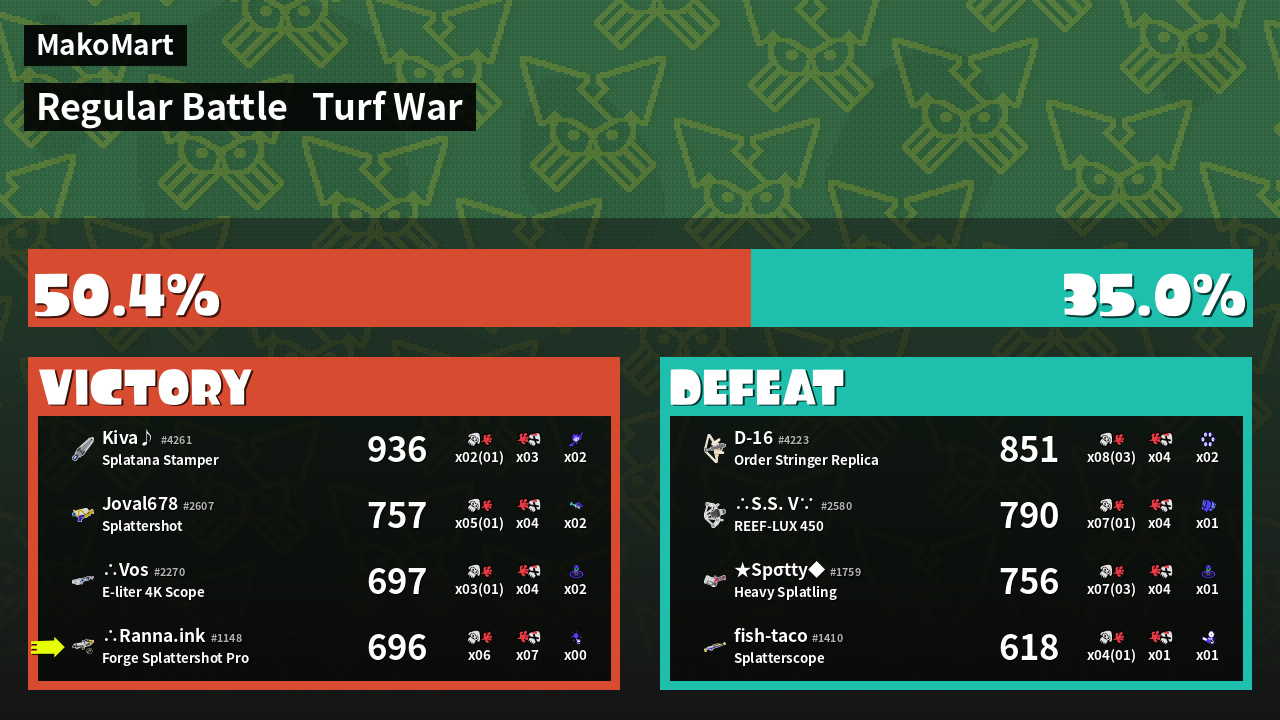 | Mode | Turf War - Regular Battle | ||