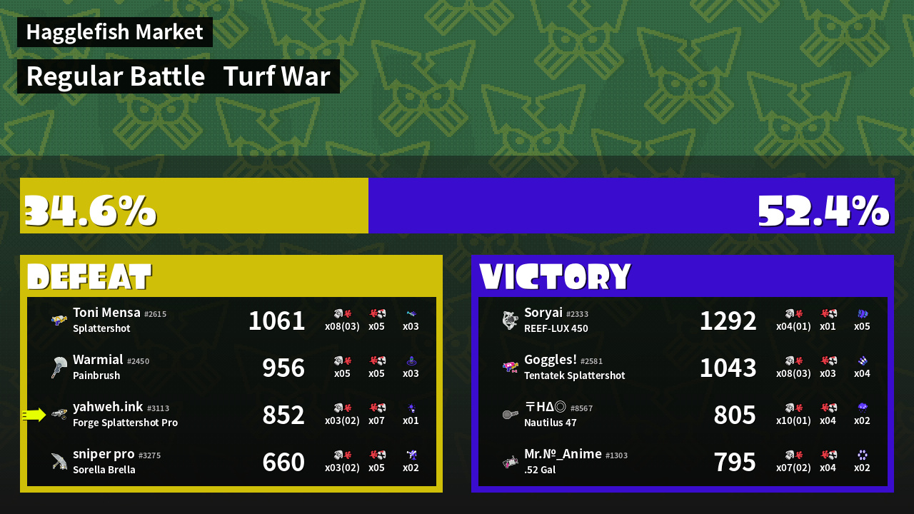 | Medals | #1 Enemy-Base Inker #1 Base Defender #2 Popular Target | ||