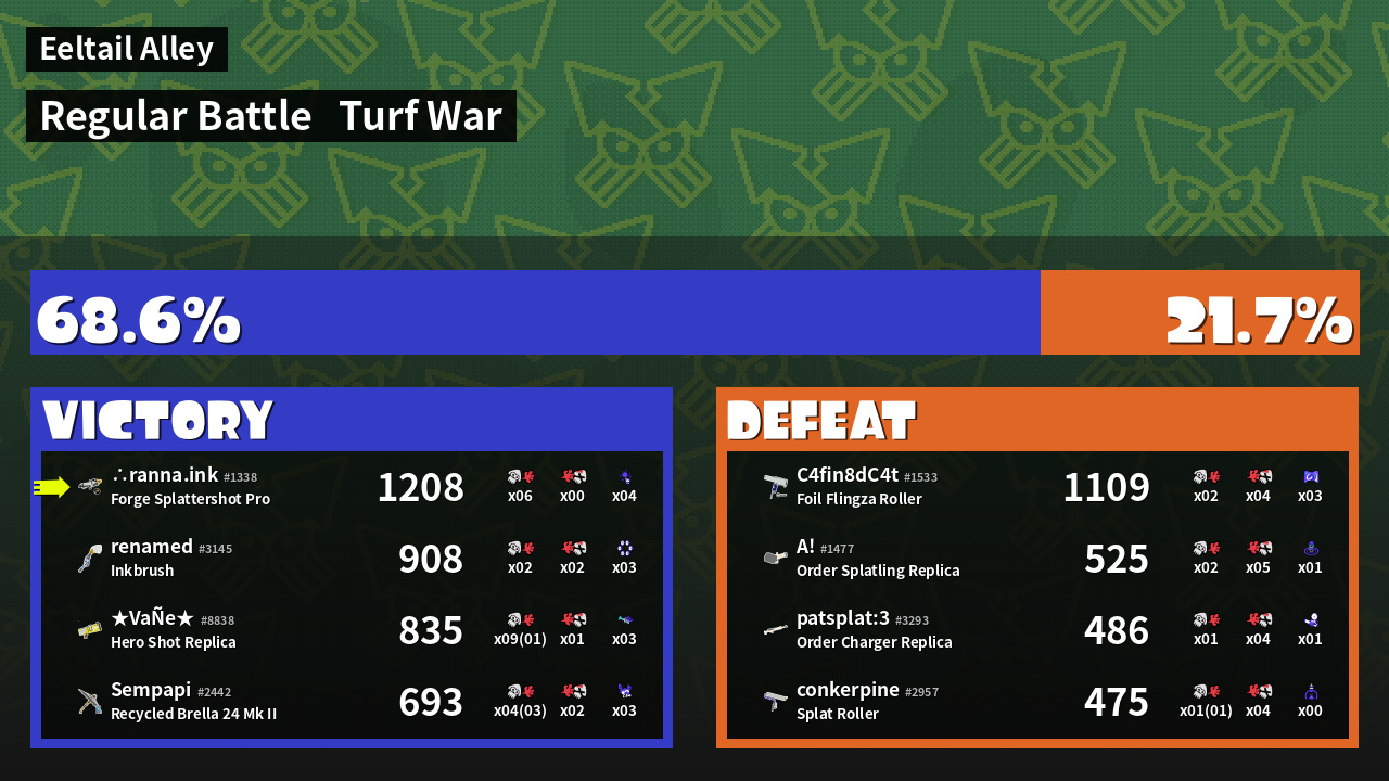 | Medals | #1 Turf Inker #1 Enemy-Base Inker #1 Booyah Bomb User | ||