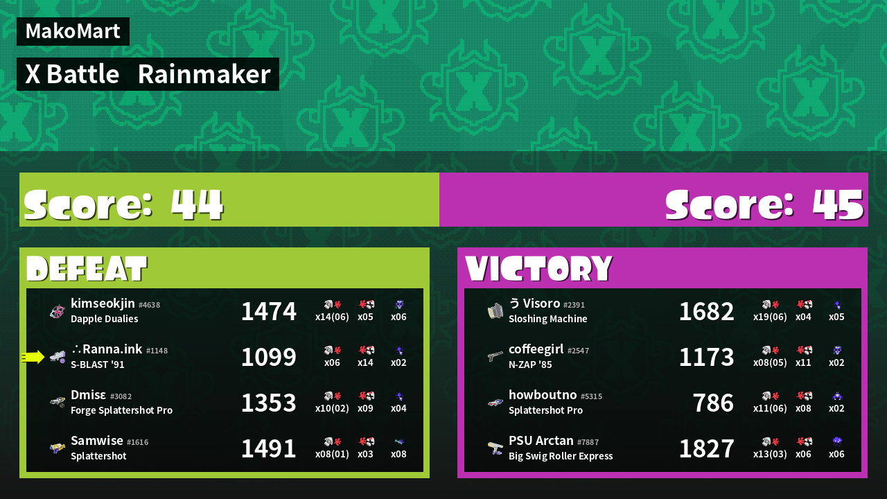 | Mode | Rainmaker - X Battle | ||