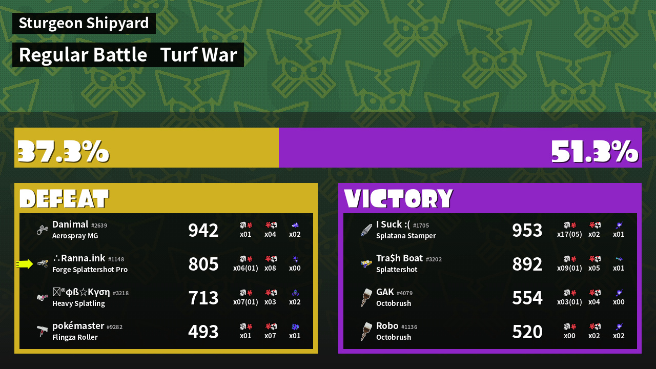 | Medals | #1 Splat Assister #1 Damage Taker #1 Ink Consumer | ||