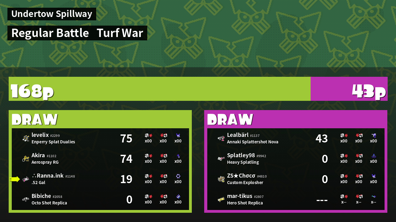 | Mode | Turf War - Regular Battle | ||