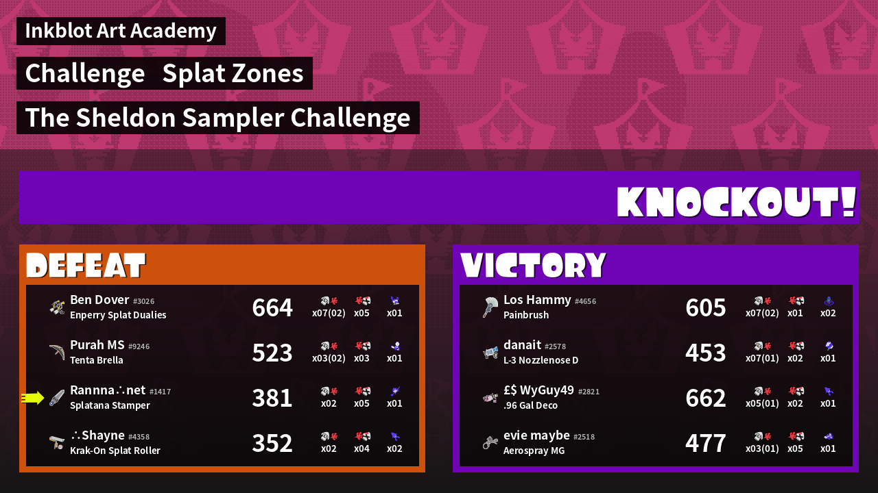 | Medals | #1 Super Jump Spot #2 Splat Zone Inker #2 Enemy Splatter | ||