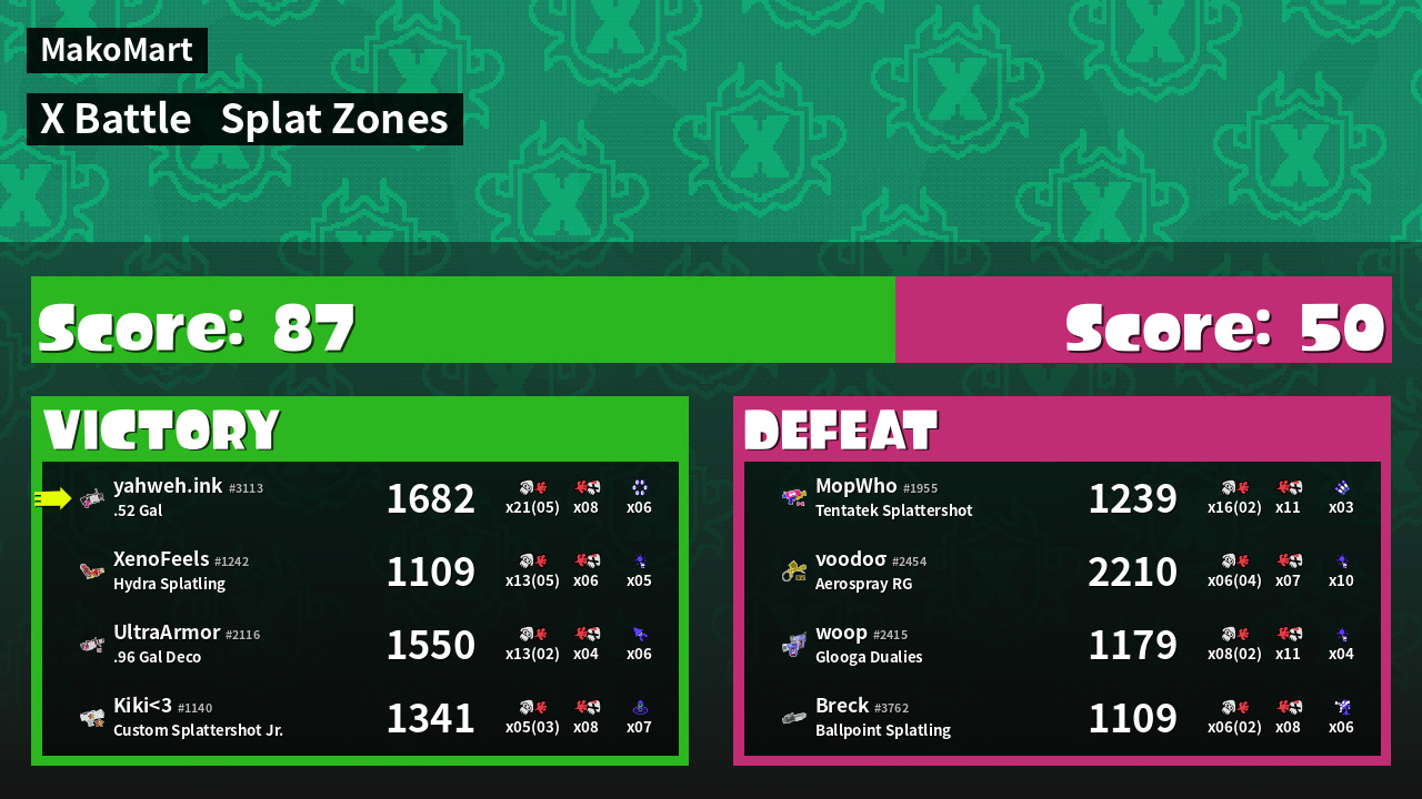 | Medals | #1 Overall Splatter #1 Splat Zone Inker #1 Splat Zone Guard | ||